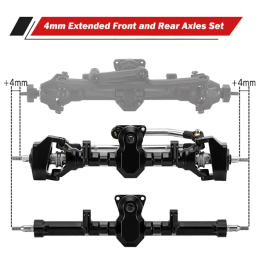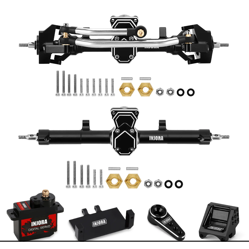 Set de ponts avant et arrière INJORA ProSteer +4 mm avec kit servo INS012G pour SCX24 - SCX24-184BKFR-INS012G