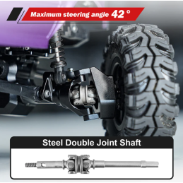 Angle de braquage maximal de 42° : permet une maniabilité considérablement améliorée par rapport aux 27° du SCX24 d'origine, offrant des virages plus serrés et de meilleures performances sur les sentiers techniques.