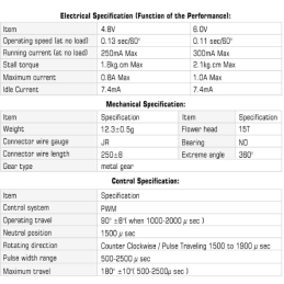 Vitesse de fonctionnement : 0,13 s/60° (4,8 V) 0,11 s/60° (6 V)