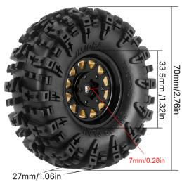 Jantes INJORA 1,3" 70x27mm en laiton avec pneus Swamp Claw pour 1/18 1/24 - YQW-1301BGD-1319