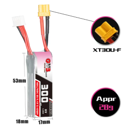 Batterie LiPo GAONENG GNB LiHV 3S 11.4V 300mAh 80C XT30 - GNB3003S80AHV