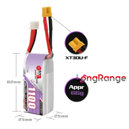 Batterie LiPo longue portée GAONENG GNB LiHV 3S 11,4 V 1 100 mAh 60 C XT30 - GNB11003S60AHV
