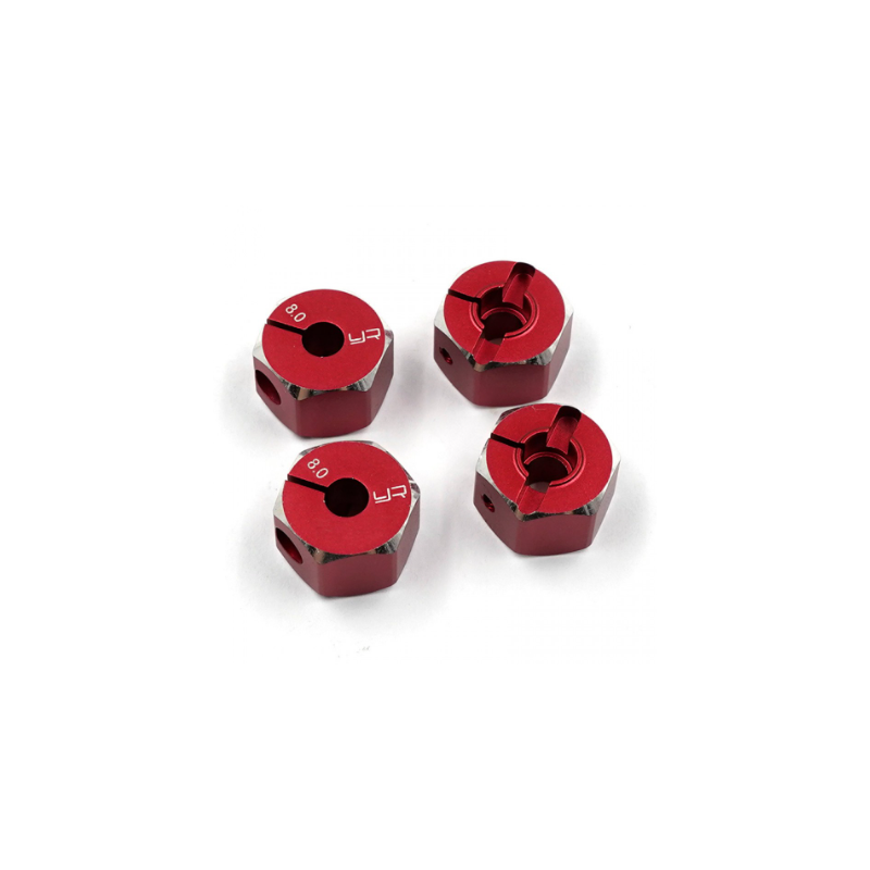 Hexagones de roue aluminium rouge YEAH RACING 12x8mm (x4) - WA-041RD