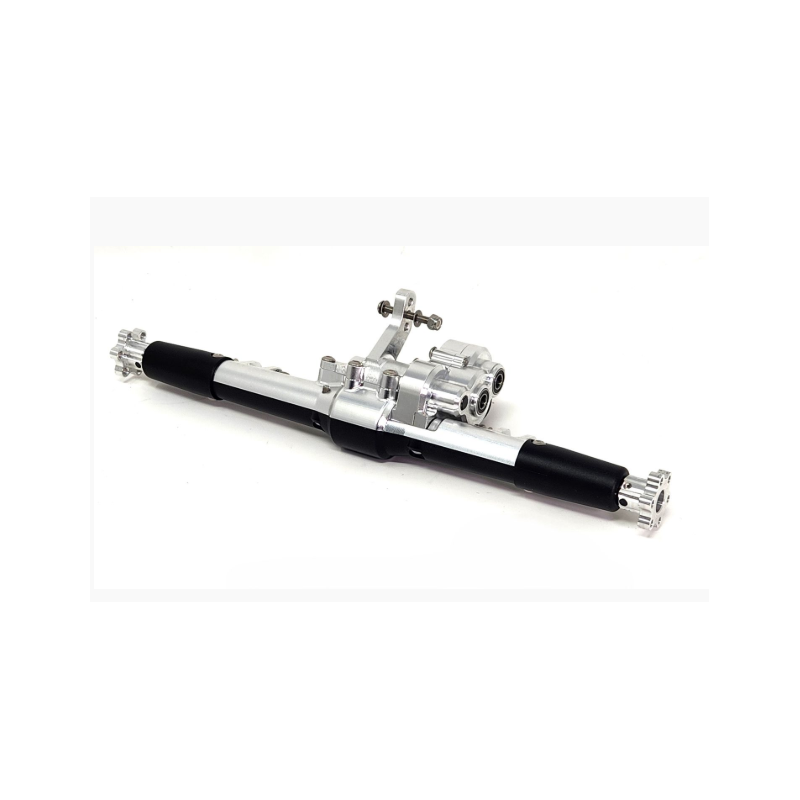 La boîte de vitesses, le surmatelas d’essieu et le support de liaison sont interchangeables avec les essieux XR10 (doivent être utilisés ensemble en raison des roulements plus grands). Doit utiliser des arbres d’essieu et des cadenassages Dlux. Un léger travail Dremel est nécessaire.