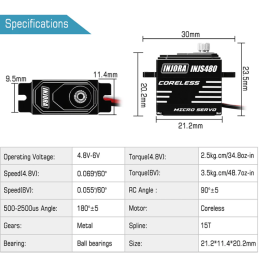 Micro servo noir INJORA avec palonnier noir pour SCX24 - INJS480A-BK