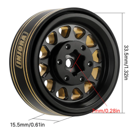Jantes Beadlock laiton INJORA 1,3" 68 g/pièce pour 1/24 1/18 (x4) - YQW-1301BGD