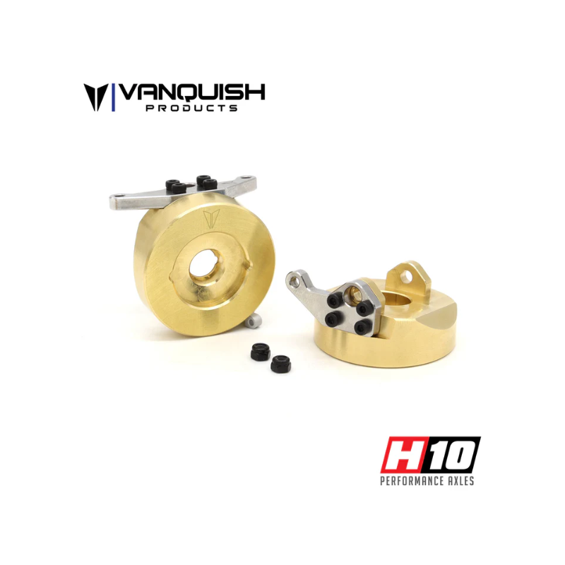 Les fusées de direction en laiton Vanquish Products H10 remplacent directement les essieux H10 des modèles H10 Optic RTR et en kit. Conçues pour alourdir l'avant de votre camion, elles offrent une garde au sol optimale. Elles sont dotées d'un bras de direction épais en acier inoxydable, boulonné sur le dessus de la fusée, pour un dégagement accumulé.
