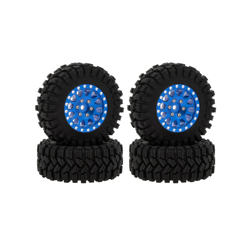 Pneus RC MEUS Racing type A 4 PCS avec jantes en aluminium bleu de 1,2 pouce TRX4M-01-KY0273