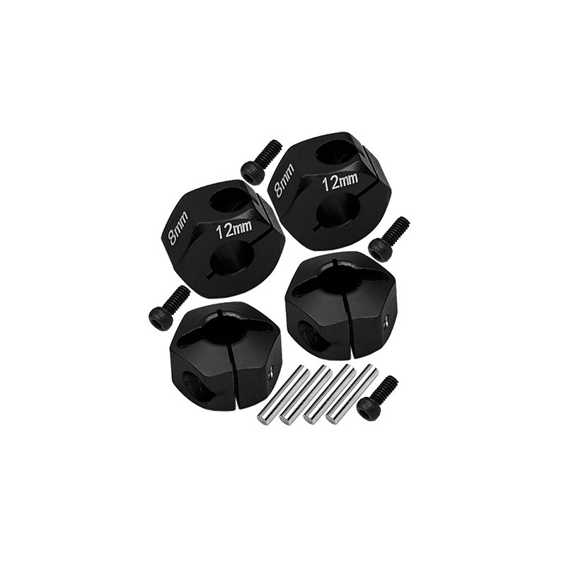 Hexagones adaptateurs de roue aluminium noir 8mm d'épaisseur GPM - GT010/12X8MM-BK