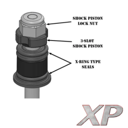 Parmi les autres caractéristiques clés, citons les tiges d'amortisseurs chromées dur, l'extrémité supérieure de la tige clavetée et un système d'étanchéité de haute qualité équipé de joints de type X-Ring pour éviter les fuites.
