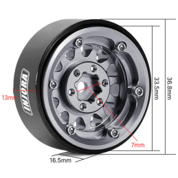 Jantes INJORA 1,3" aluminium Beadlock gris déport 0mm pour 1/24 1/18 RC (x4) - YQW-1311BG