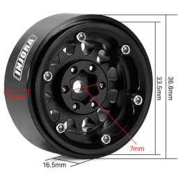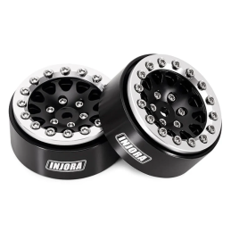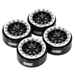 Jantes INJORA 1,3" aluminium Beadlock argent/noir déport 0mm pour 1/24 1/18 RC (x4) - YQW-1311SB