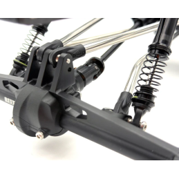 Contrôle de précision : Grâce à son moteur avant et à sa direction BTA (Behind the Axle), le XP10 offre un contrôle précis pour le franchissement technique. Les axes de 5 mm, solidement fixés par goupilles, éliminent tout jeu probable, garantissant une transmission directe de vos actions à la paroi rocheuse.